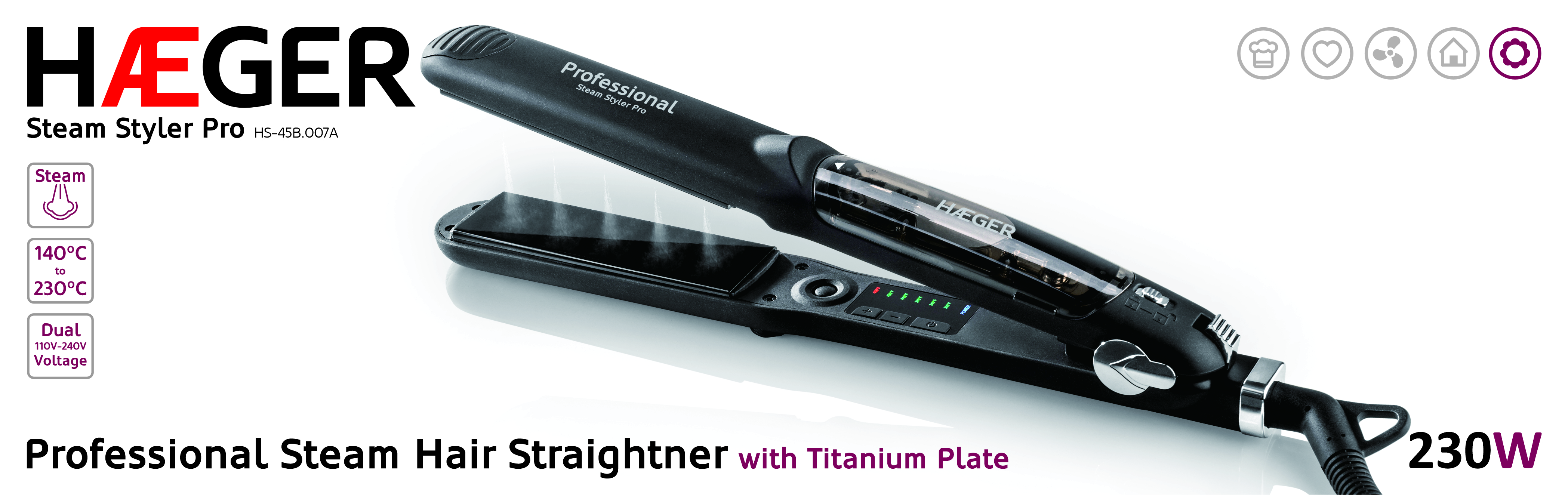 • Sistema de vapor para um alisamento perfeito e profissional