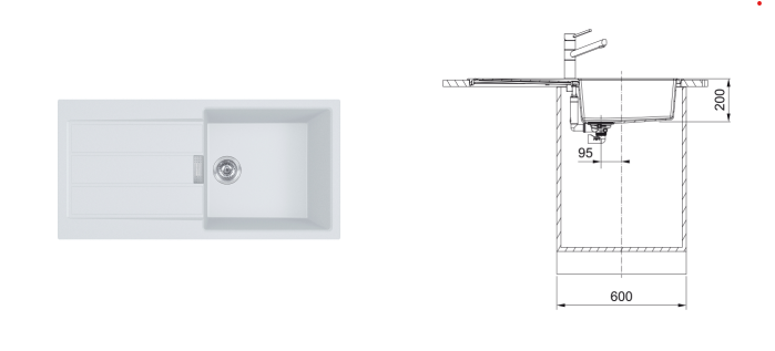 Móvel 60 cmTotais 1.000 x 500; R8 mmCuba 450 x 432 x 200; R10 mmEncastre 984 x 484 mm; R7,5