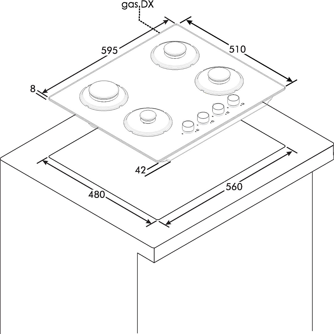 Dimensões necessárias para o encastre LxP: 56×48 cm